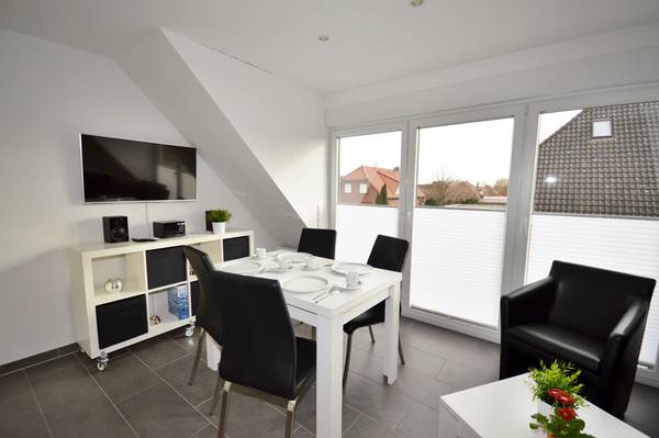 Von dieser liebevoll eingerichteten Ferienwohnung aus können sie alle Sehenswürdigkeiten, die Norddeich zu bieten hat, fußläufig erreichen. Das Erlebnisbad "Ocean Wave" oder der Strand zum Beispiel sind innerhalb von maximal 5 Minuten erreicht. Die helle OG-Wohnung bietet Ihnen bis zu vier Personen Platz. Neben dem gemütlichen Wohnzimmer bietet sie eine vollausgestattete Küchenzeile, an der man das ein oder andere leckere Essen für seine Lieben zubereiten kann.